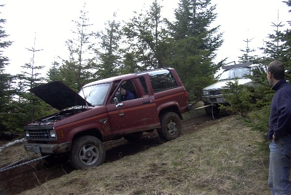 We had to go down and rescue a Toyota that made it down, but not back up. Coming up, Francis busted his steering. The pitman arm and a tie rod were bent.